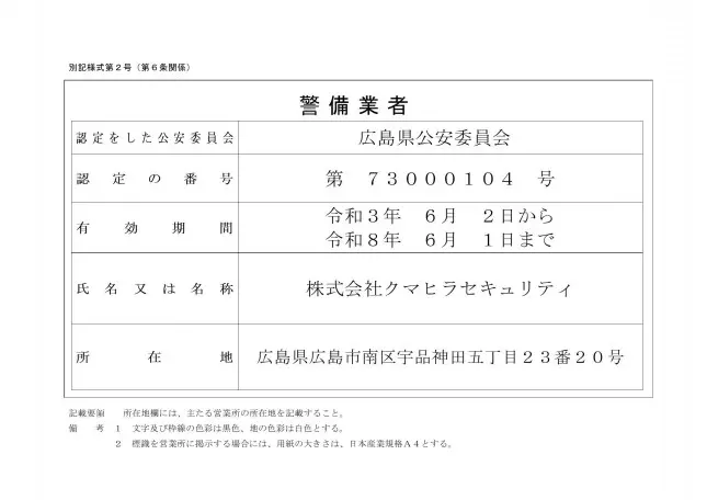 各種警備業務およびセキュリティ機器等の販売を目的として、株式会社クマヒラ警備保障としてスタートし、広島市を拠点に40年にわたり事業を展開し、地域社会の安全と安心を支えてまいりました。